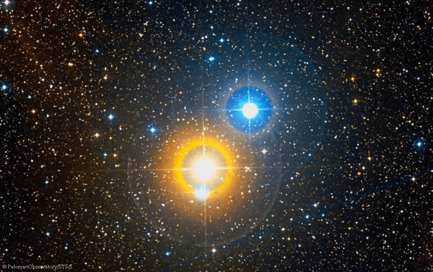 Albiréo : À l'œil nu, on ne distingue qu'une seule étoile.